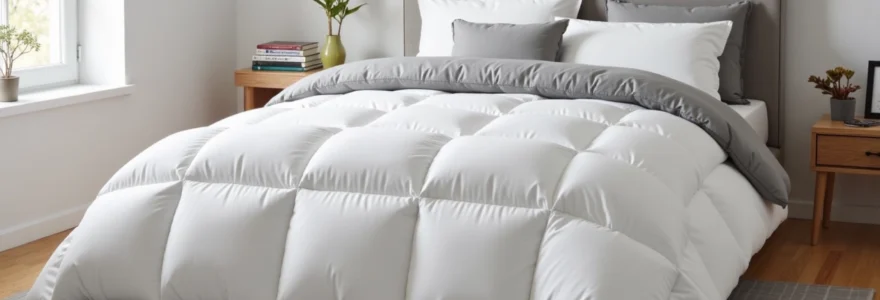 La structure du garnissage joue un rôle déterminant dans cette longévité exceptionnelle. Le piquage en losanges maintient la répartition homogène du polyester même après de nombreuses compressions nocturnes, évitant les migrations de matière responsables des zones d’affaissement. Cette stabilité structurelle conserve les performances thermiques initiales sur une durée estimée à 7 ans d’usage quotidien, soit près du double des couettes synthétiques standard. La rentabilité à long terme de l’investissement initial s’en trouve considérablement améliorée.