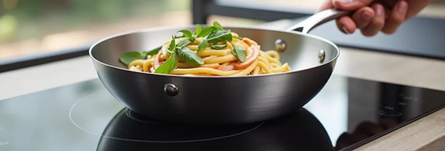 Les plaques vitrocéramiques et électriques traditionnelles trouvent également leur compte avec les poêles inox. La planéité parfaite des fonds usinés garantit un contact optimal avec la surface chauffante, maximisant le transfert thermique. L’inertie thermique modérée de l’acier permet une réactivité satisfaisante aux variations de puissance, facilitant le contrôle précis des températures de cuisson.